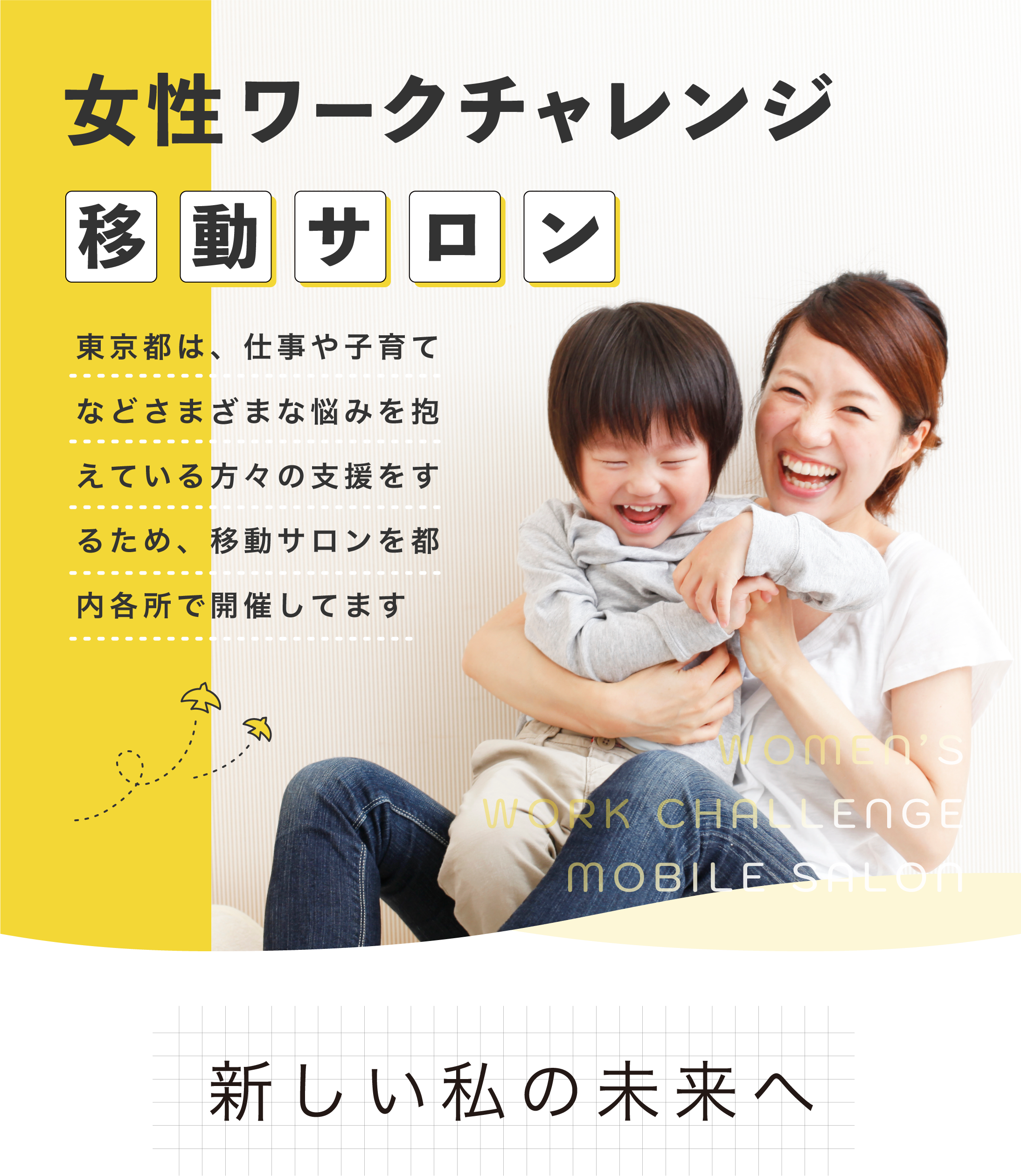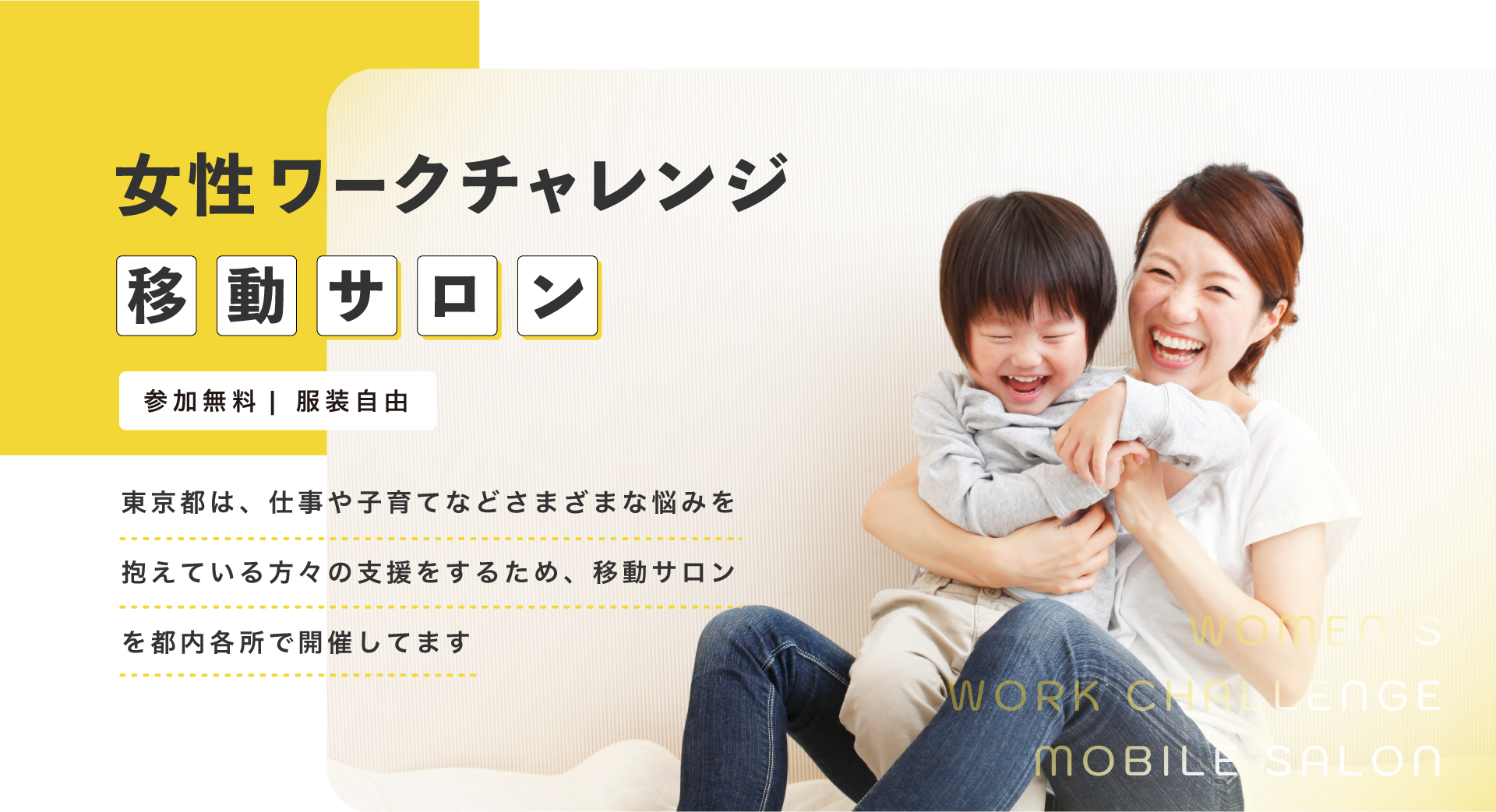 東京都は、就職活動や就職を希望しながらも仕事や子育てなどさまざまな悩みを抱えている方々の支援をするため、移動サロンを都内各所で開催します。セミナーでは「おかねのこと」、「くらしのこと」、「みらいのこと」、「じぶんのこと」、「しごとのこと」をテーマにお話しします。そして、相談会・交流会では、さまざまな状況に応じた働き方やキャリアアップの進め方、お悩みに合った支援などをご案内いたします。
